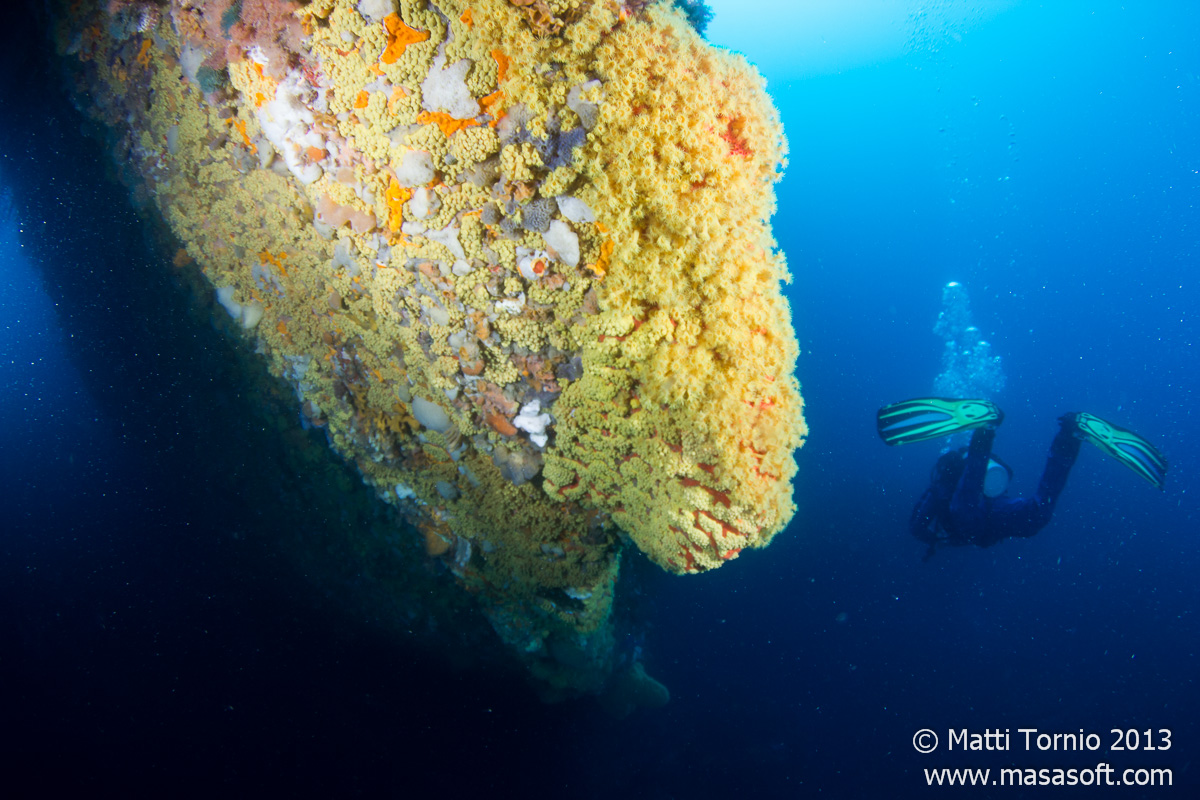 The diving itself was great even if I had some issues on some of the dives. On Saturday we started out with the Pinnacle, a great site with nice walls and cool swim-throughs. The Pinnacle was followed by an unnamed site near Tidal River. Unfortunately we ended up in rather boring area and the dive was quite disappointing with little interesting to see. Starting from the very first dive I also had some problems with my drysuit exhaust valve, it kept malfunctioning on some of the other dives too.